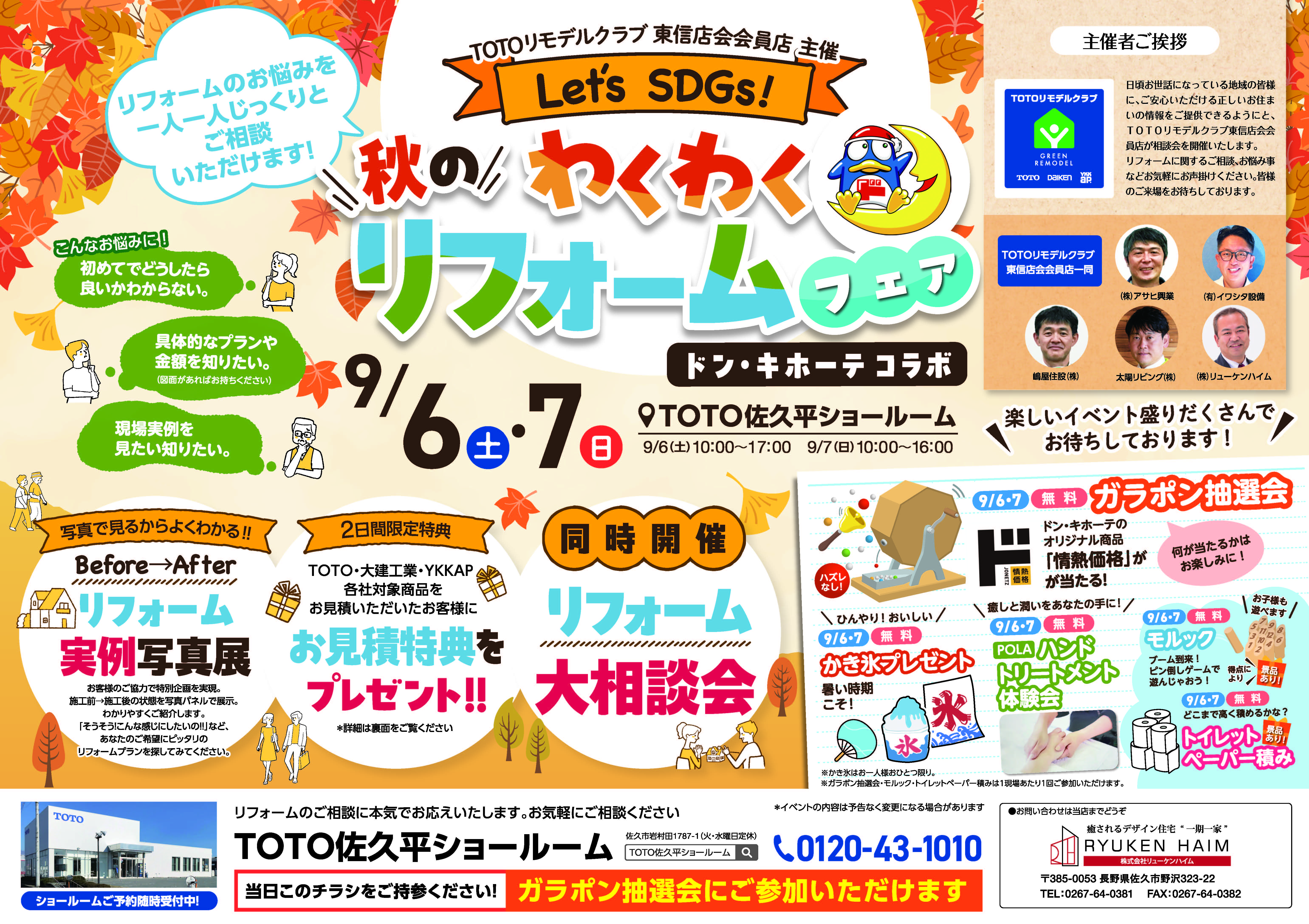 \リフォーム/TOTO佐久平SR:秋のわくわくリフォームフェア(終了しました)