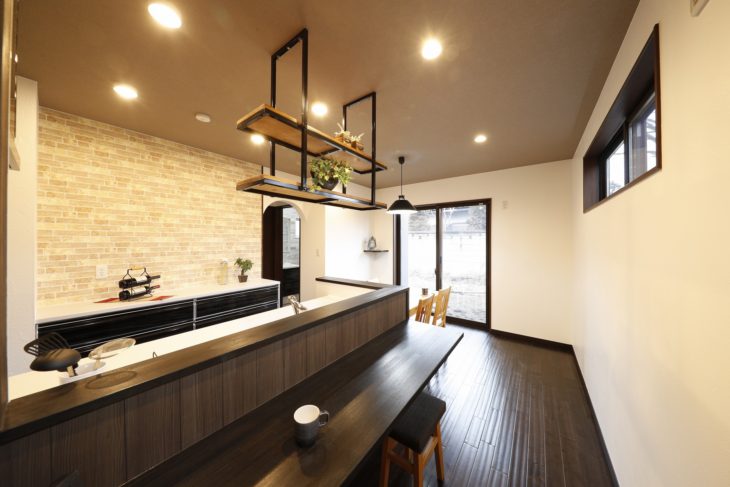 キッチンの上部にはカフェのように観葉植物を飾るラックがあります!