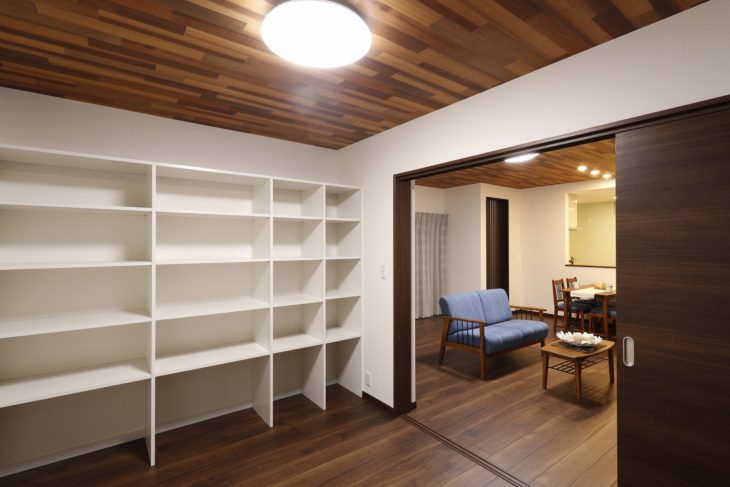 リビングに接する洋室にはピアノを置きました。扉を大きく開けるので、より開放的になります。